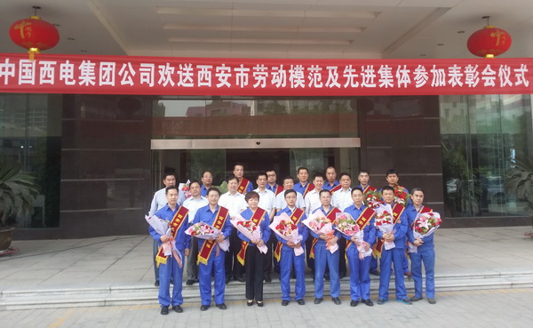 中國西電集團(tuán)領(lǐng)導(dǎo)與全體新當(dāng)選的西安市勞動(dòng)模范合影留念